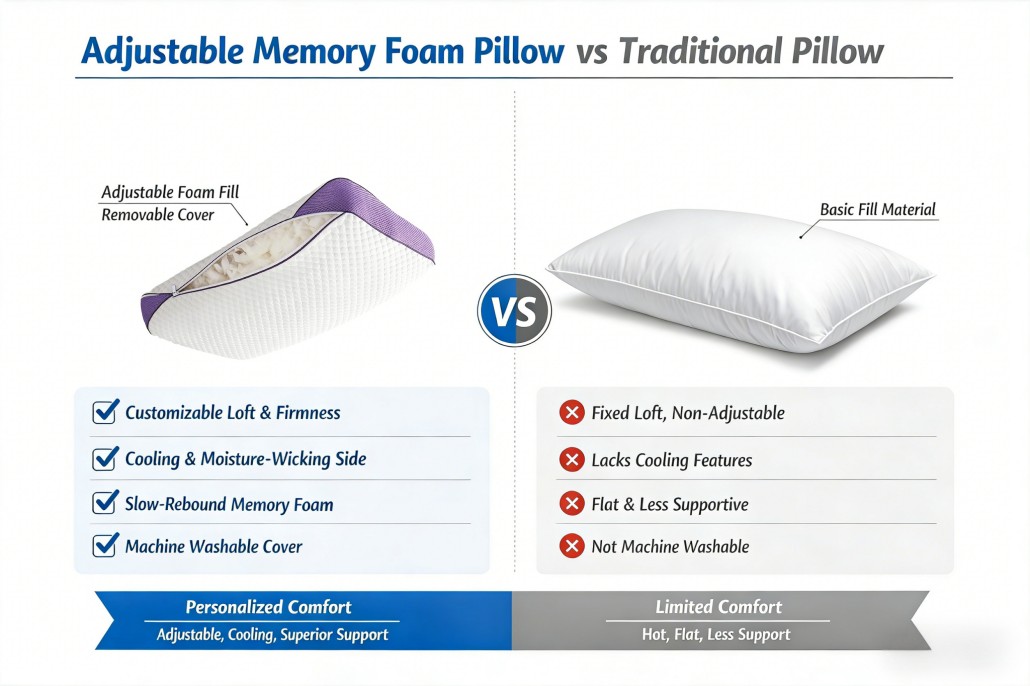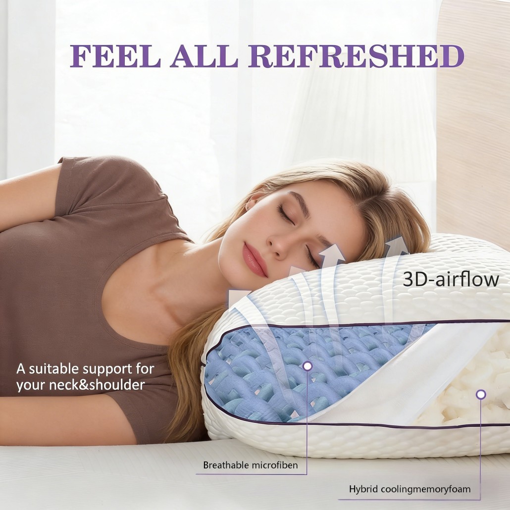 Adjustable Memory Foam Pillow for Side Back & Stomach Sleepers Cooling Pillow