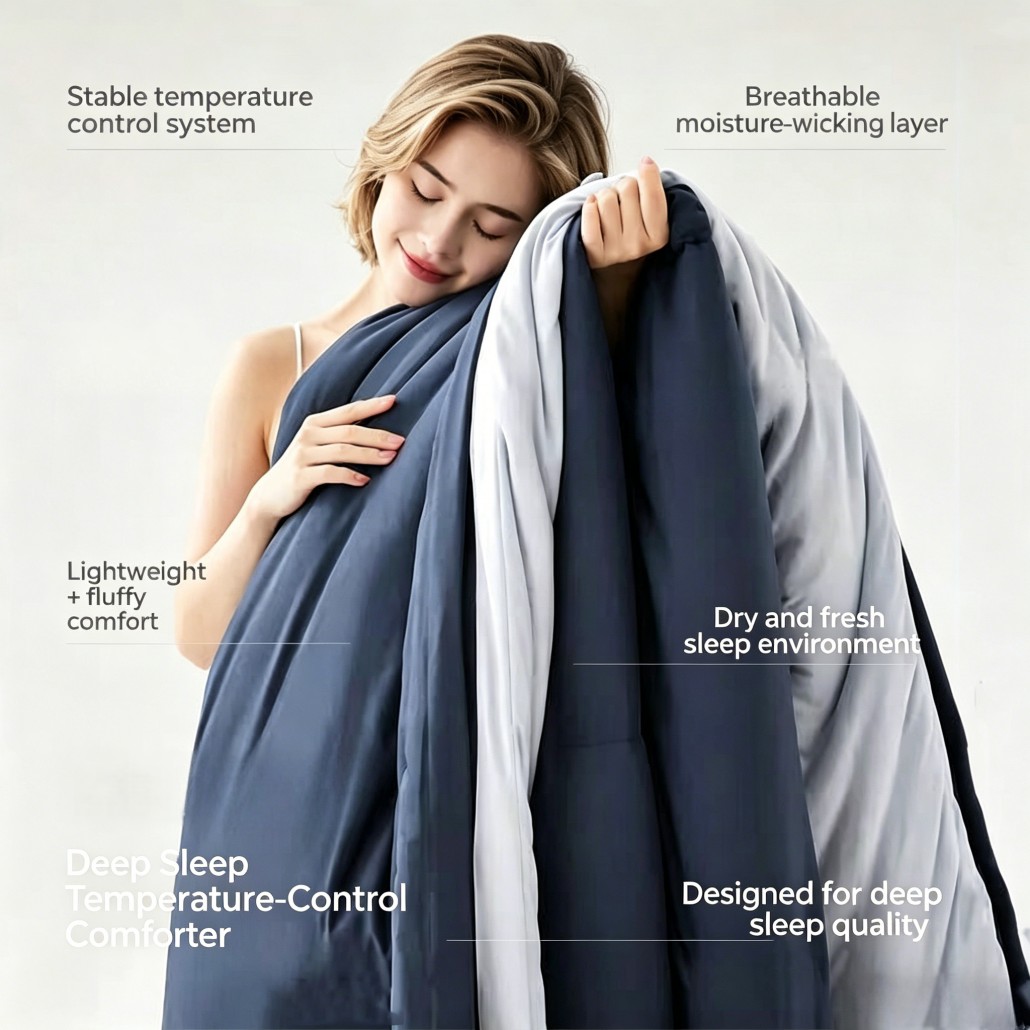 This Deep Sleep Temperature Control Comforter is designed to keep your body in perfect balance — so you can sleep deeper, longer, and more comfortably.