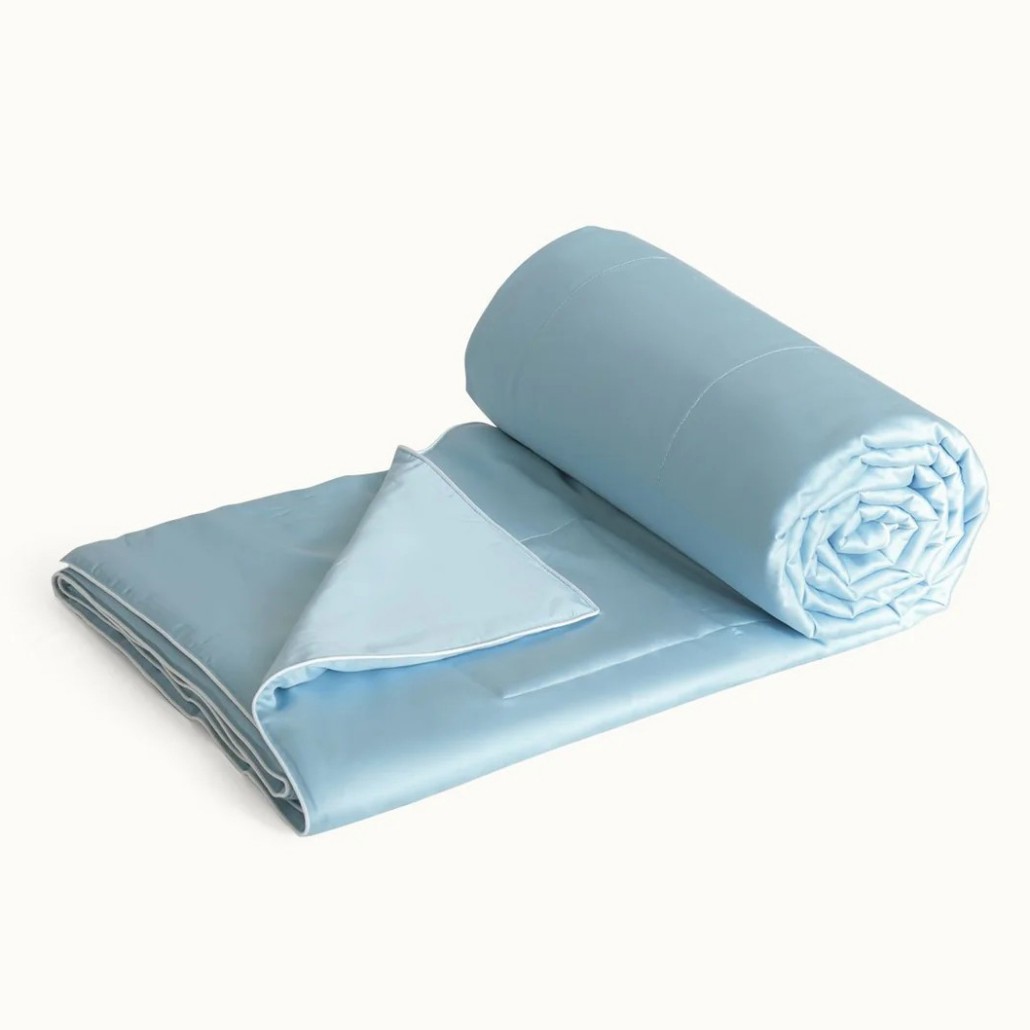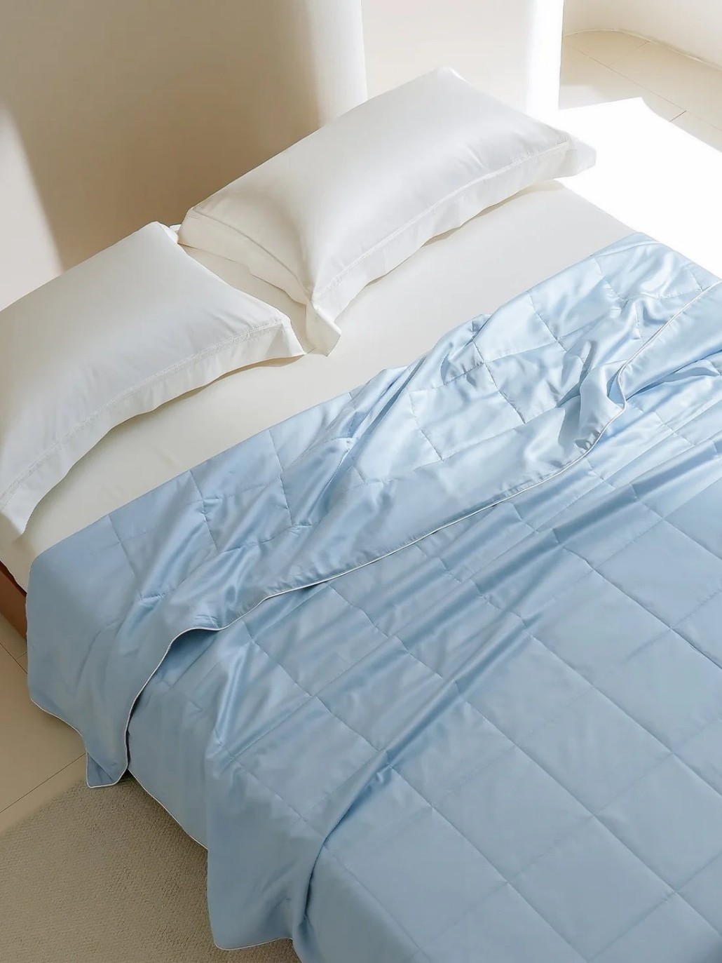 Enjoy uninterrupted sleep with the Thxsilk TENCEL Lyocell Lightweight Cooling Blanket – featuring the perfect balance of comfort and breathability. It boasts a sewn-through construction to ensure uniform fill distribution and reduced shifting or bunching of the fill.