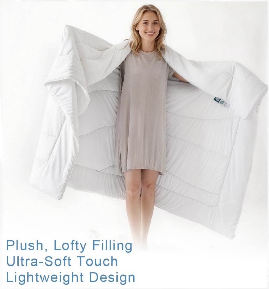 The 220 GSM fluffy construction provides a soft and airy feel without heavy pressure, making it perfect for summer and warm climates. Its sweat-wicking and skin-friendly materials help keep users dry and comfortable throughout the night.