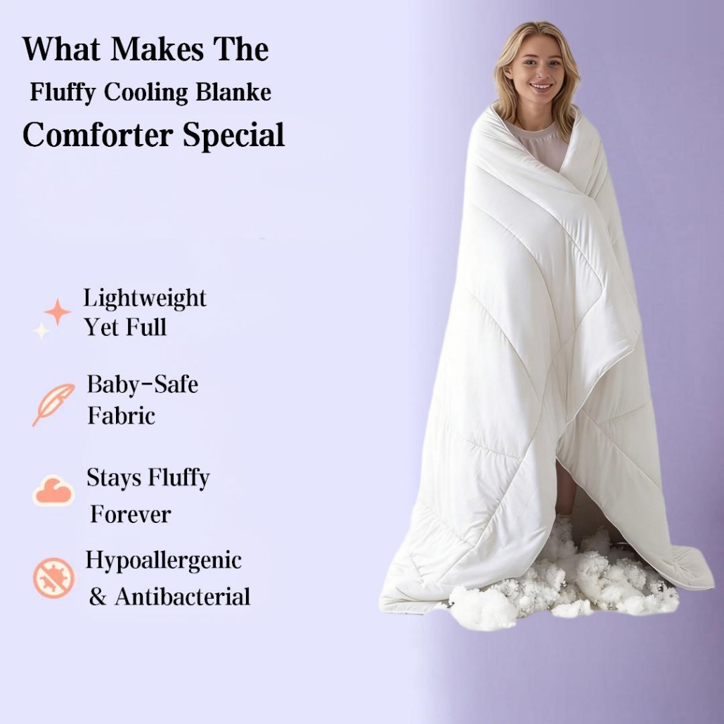 It features a double-sided design with cooling fabric and a fluffy lightweight structure, offering both comfort and breathability.