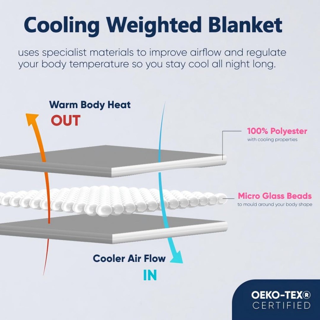 The soft, breathable fabric and evenly distributed glass beads provide gentle pressure to reduce stress and promote deeper sleep—without overheating.