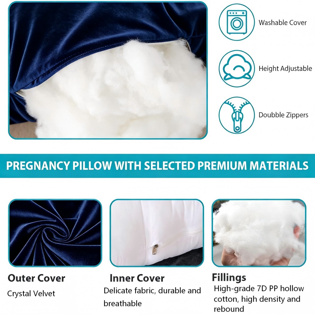 A:Yes. The maternity pillow features a removable and machine-washable cover with a double zipper design. This allows users to easily remove the cover and wash it in a washing machine, keeping the pillow clean and fresh for daily use.