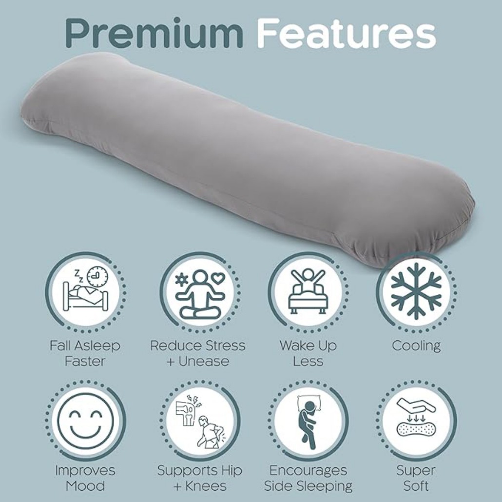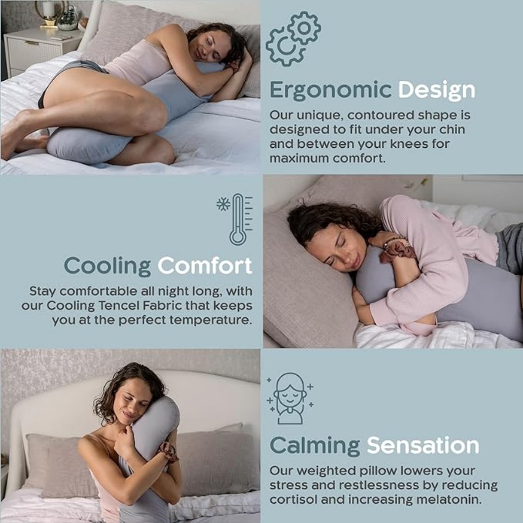 This cooling weighted body pillow is perfect for sleeping, relaxing, reading, or watching TV. It is especially helpful for side sleepers, light sleepers, and anyone looking to reduce stress and improve sleep quality.