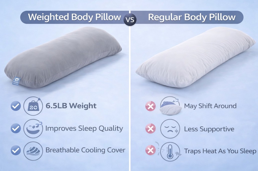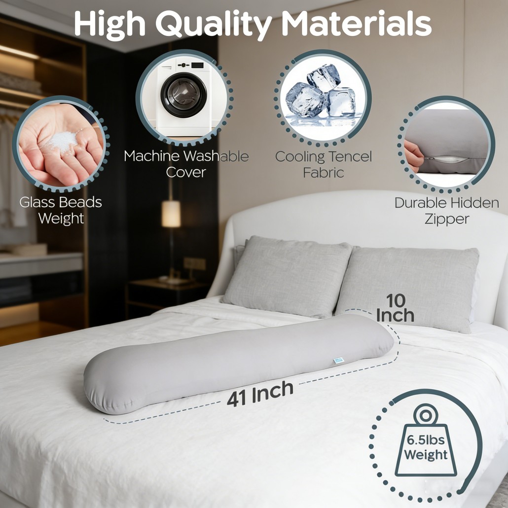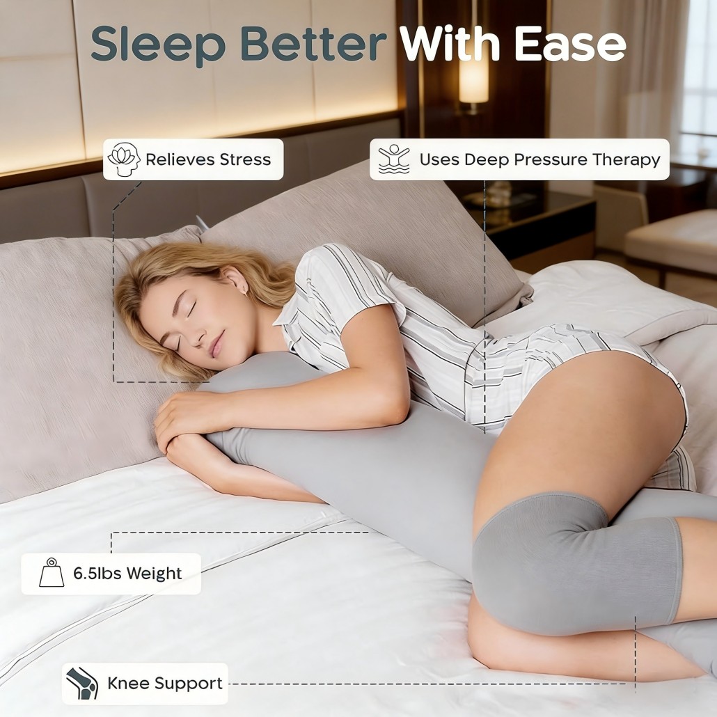 A weighted body pillow is a long pillow filled with evenly distributed weight that applies gentle pressure to the body. This pressure creates a calming sensation similar to a hug, helping relax the nervous system and promote deeper sleep.